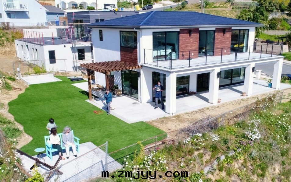 Fully electric house, no natural gas, Tesla Solar Roof, two Tesla Powerwalls, two electric cars. Photo by Chuck Field.