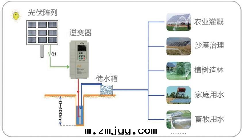 離网(wǎng)光(guāng)伏扬水(shuǐ)系(xì)統运行原理(lǐ)图(tú):